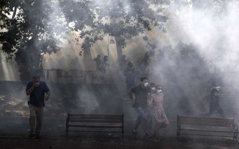 - 1º de junho - Manifestantes fogem do gás lacrimogênio lançado pela polícia em Istambul