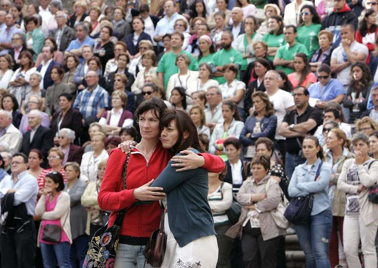 25 de julho - Deputados de todos os partidos respeitam um minuto de silêncio do lado de fora do Parlamento espanhol, em Madri, em homenagem às vítimas