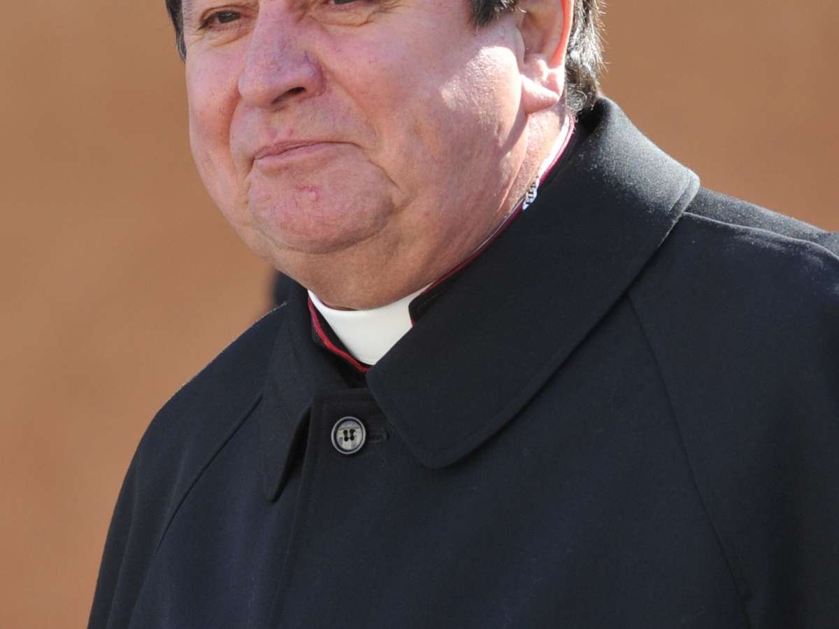 O cardeal aposentado de Los Angeles (EUA), Roger Mahony, que deixou todas as funções públicas e admnistrativas por ser acusado de encobrir casos de pedofilia, toma seu lugar na Praça São Pedro à espera da chegada do Papa