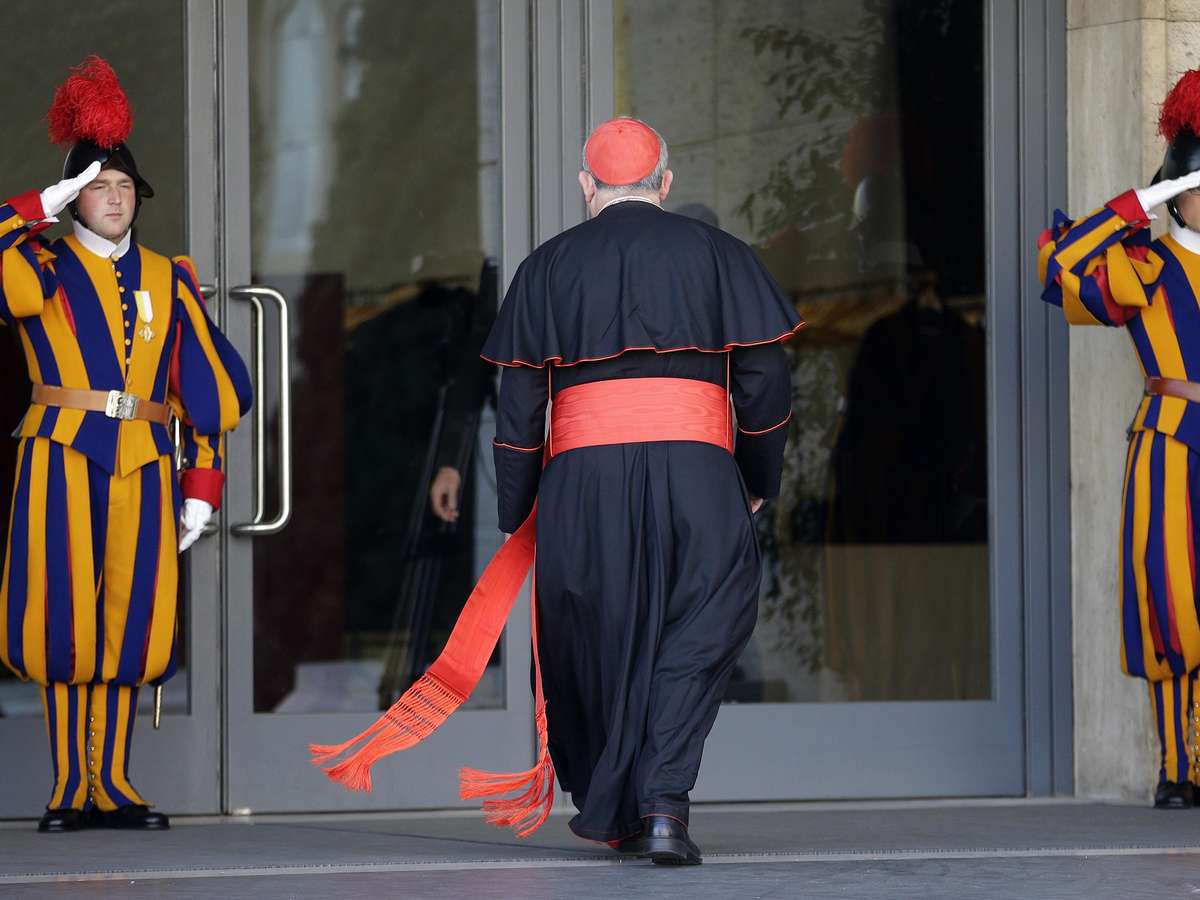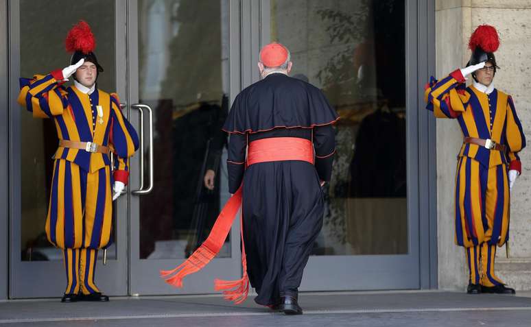 Cardeal idoso chega para o encontro. Nessa primeira etapa, mesmo cardeais que já superaram o limite de 80 anos - idade máxima para votar no Conclave - estão participando das discussões