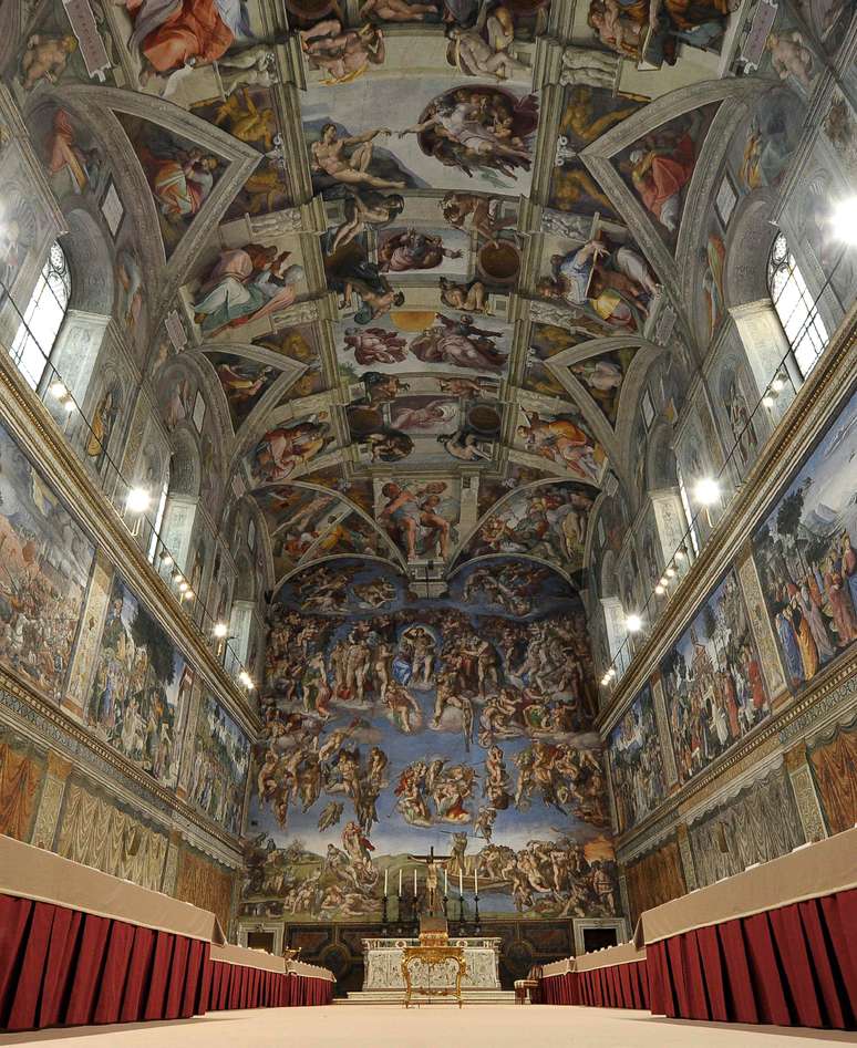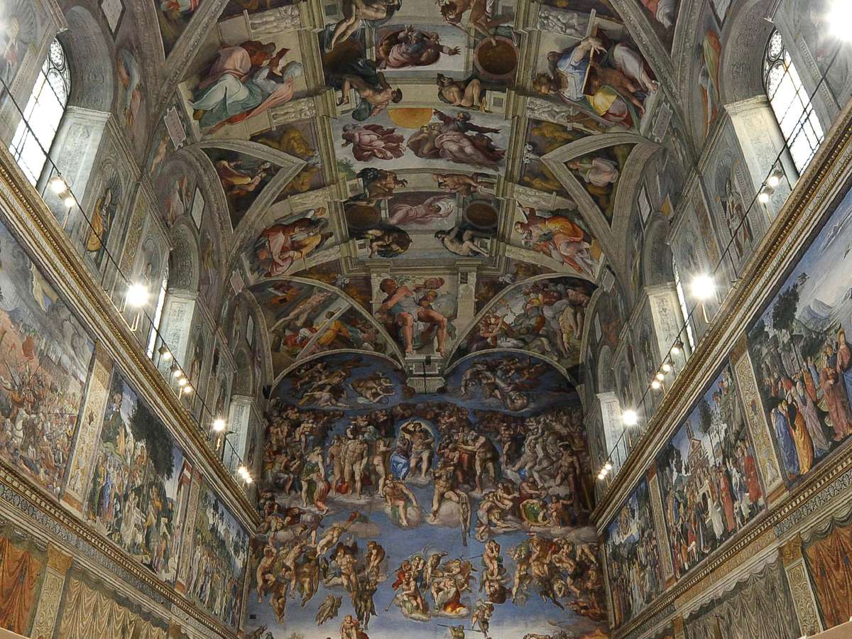 O espírito da Renascença pode ser sentido na exuberante obra de Michelangelo, que trabalhou durante quatro anos em um andaime especial até concluir os afrescos do teto, em 1512. Michelangelo voltou à capela mais de 20 anos depois para trabalhar no vasto painel do Juízo Final, na parede do altar.