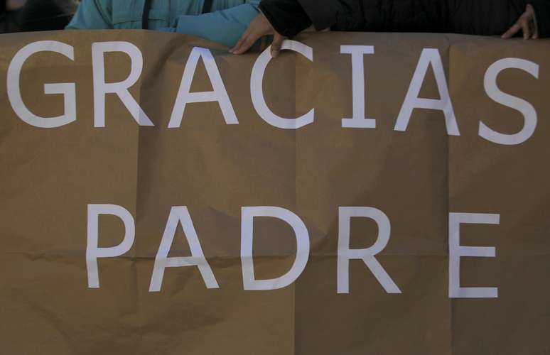 Fiéis de diferentes nacionalidades agradecem ao Papa com cartazes