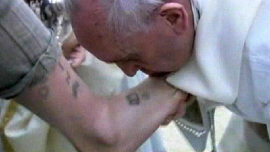 Papa Francisco Papa Francisco lava pés de detentos em prisão Exibir comentários Compartilhar No ritual tradicional, pontífice lavou os pés de 12 jovens detentos, incluindo duas mulheres e dois muçulmanos Reuters Publicidade