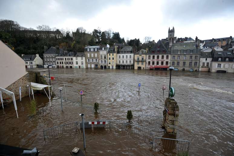 7 de fevereiro - Ruas de Qimperlé, totalmente inundadas após a chegada as fortes chuvas que atingiram a França