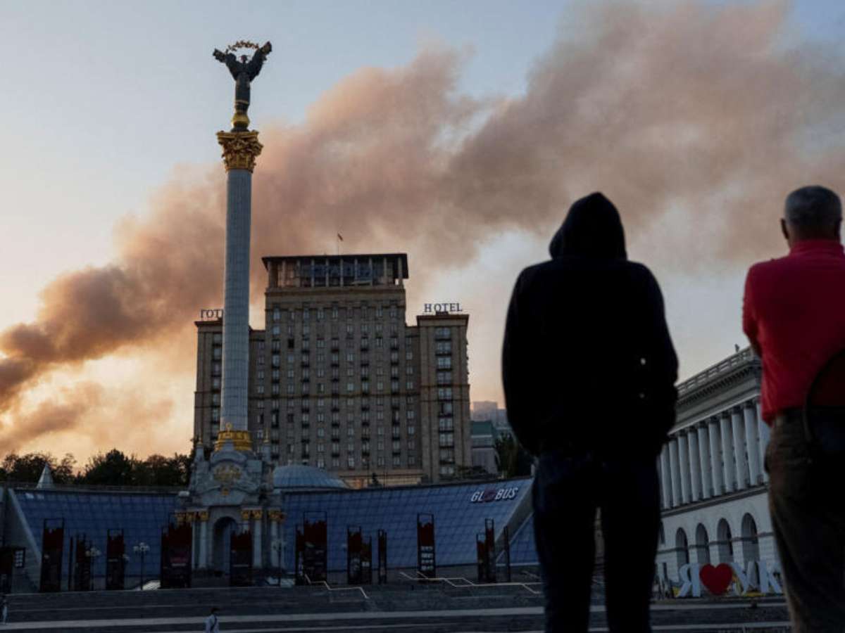 A sede do governo da Ucrânia em Kiev pegou fogo após ser alvo de uma intensa onda de bombardeios russos durante a madrugada de domingo (7), que resultou na morte de pelo menos cinco pessoas.