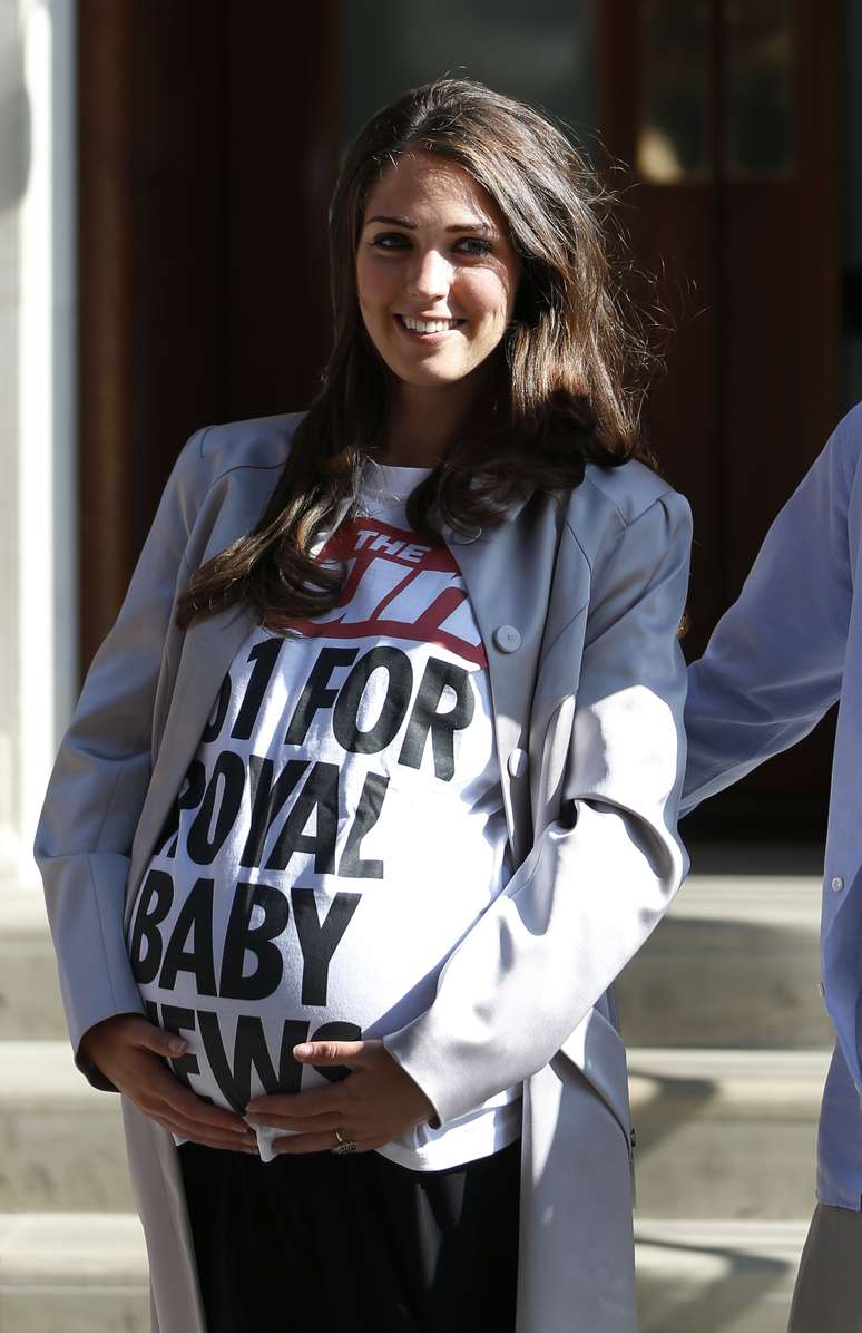 O casal foi contratado pelo tabloide britânico The Sun para divulgar a cobertura que o jornal está fazendo da espera pelo nascimento do bebê real. William e Kate falsos usavam uma camiseta do Sun com a frase “número um nas notícias sobre o bebê real”.