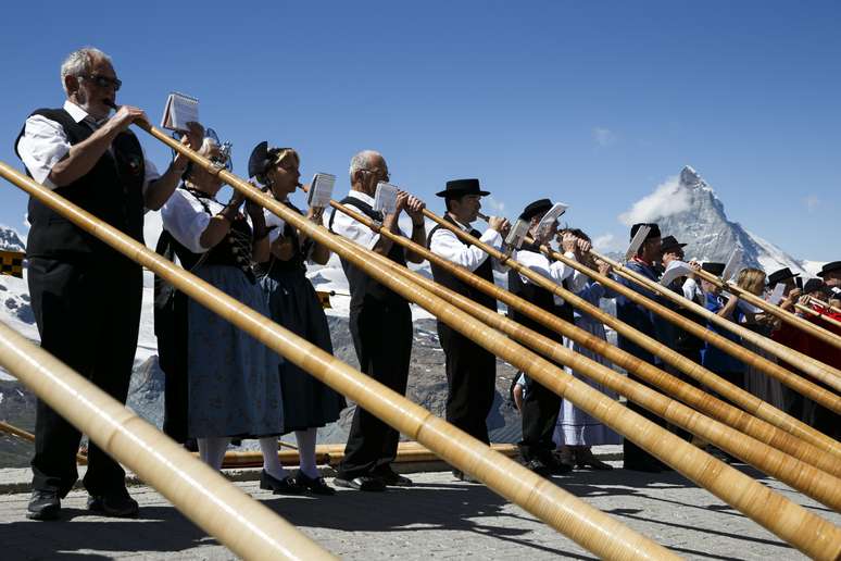 Grupo de 508 pessoas se reúne na montanha Gornergrat, nas proximidades da cidade suíça de Zermatt, para soprar o alphorn, espécie de berrante de madeira típico de regiões montanhosas da Europa. O concerto, realizado a 3.089 metros de altitude, quebrou o recorde mundial de músicos soprando este tipo de berrante ao mesmo tempo. Eles apresentaram uma música especialmente composta para o instrumento. A marca anterior era de 2009, quando 366 pessoas participar de evento semelhante