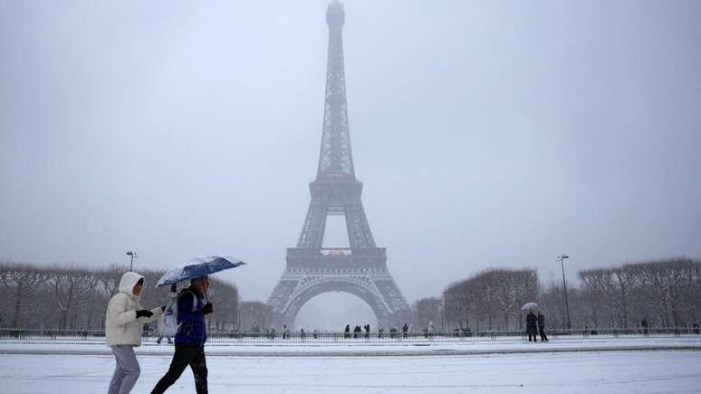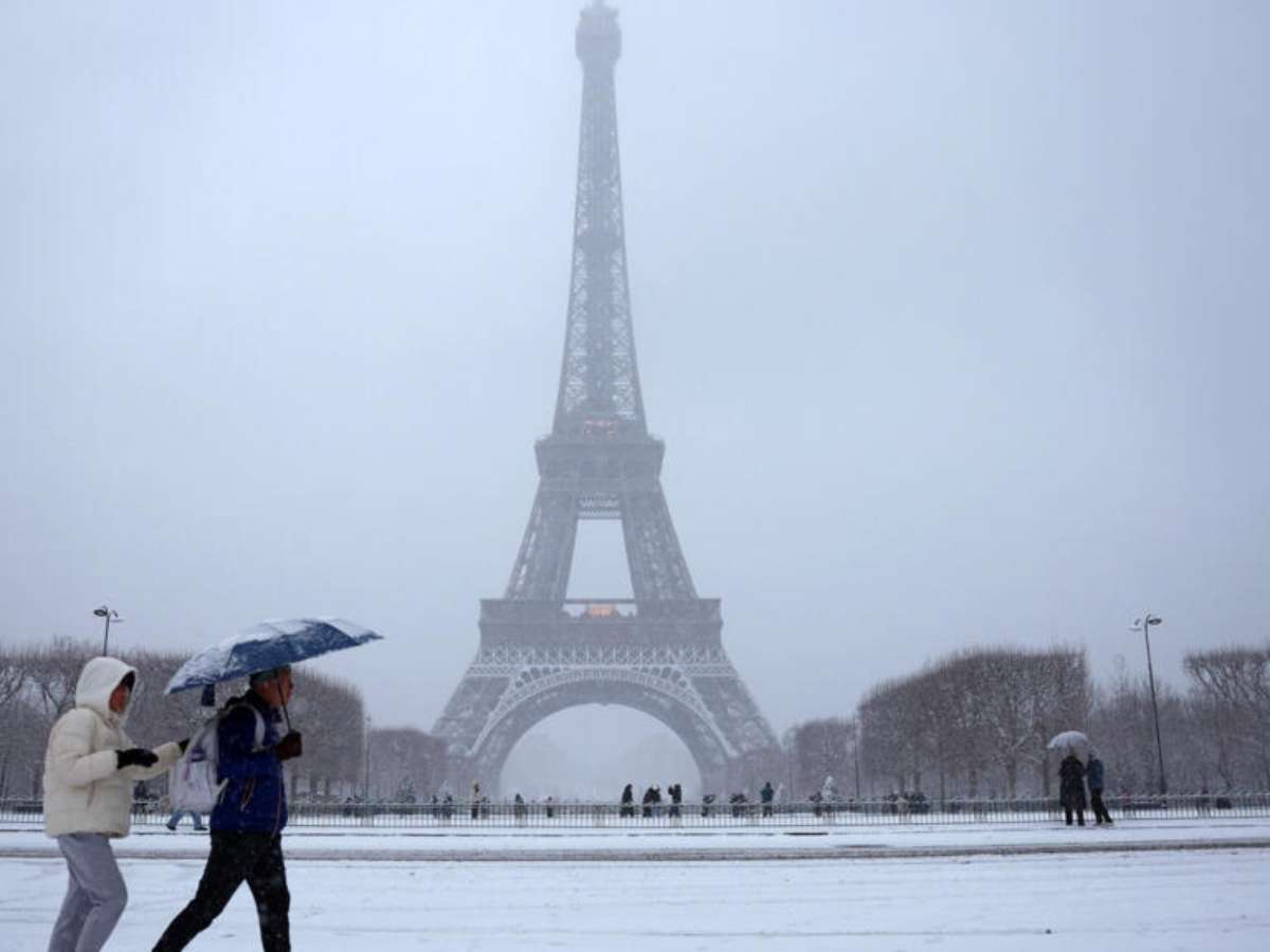 Tempestade de neve provoca redução de voos e paralisa transportes em Paris