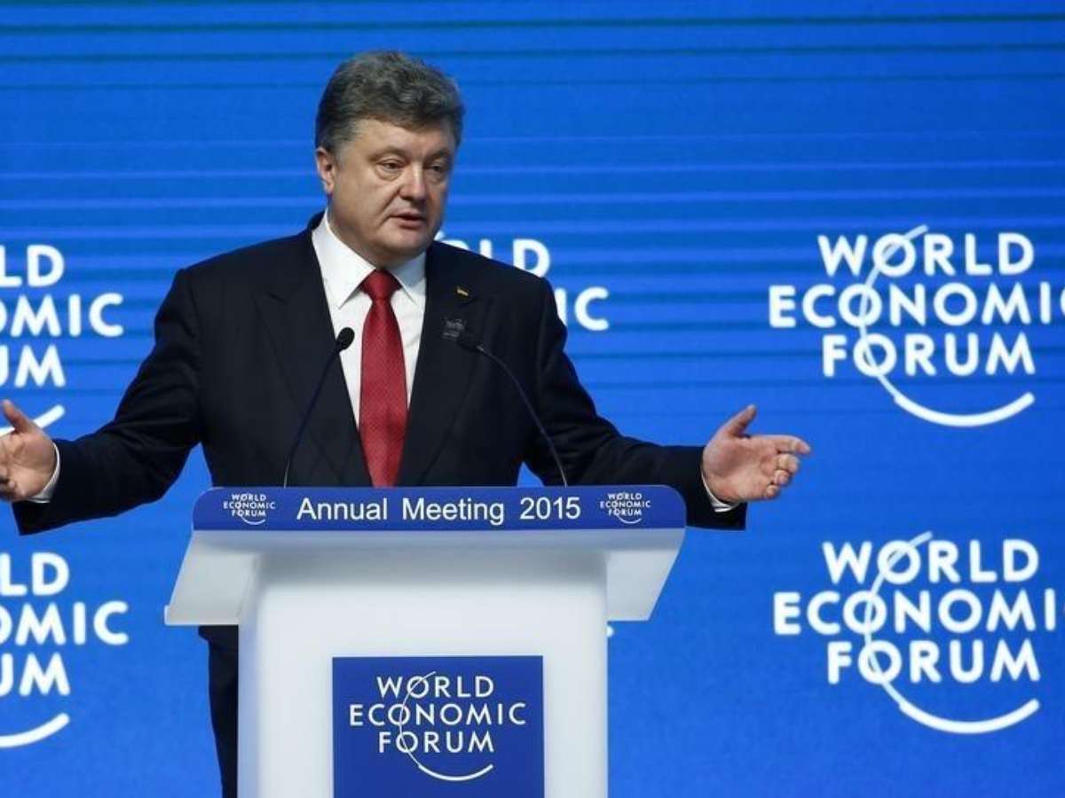 Presidente da Ucrânia, Petro Poroshenko, discursa durante o Fórum Econômico Mundial em Davos, na Suíça. 21/01/2015