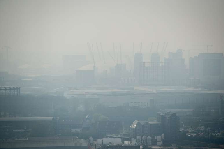 A poluição paira no ar reduzindo a visibilidade para a arena O2 , em Londres, nesta quarta-feira, em 2 de abril