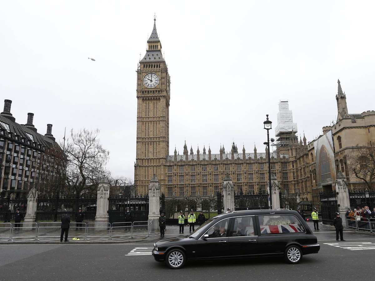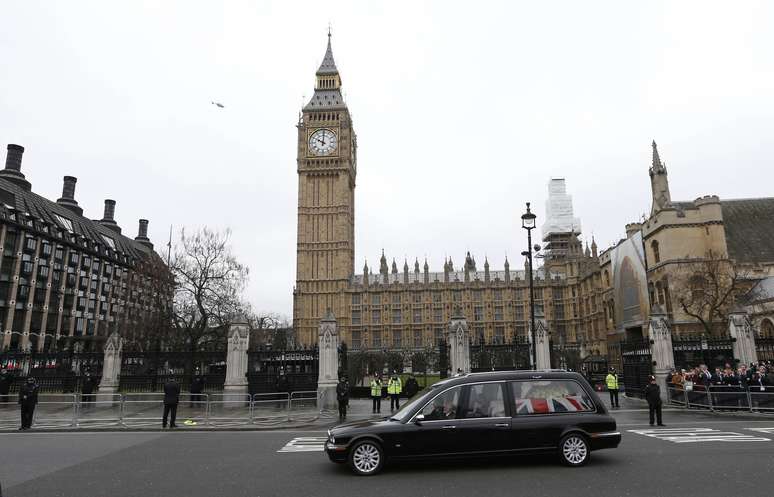 PUBLICIDADE Capa Notícias Mundo Europa As Principais Notícias da Europa Veja fotos do funeral de Margaret Thatcher em Londres Margaret Thatcher morreu no último dia 8 de abril. Ela governou o Reino Unido entre 1979 e 1990 Compartilhar Cortejo passa em frente ao Parlamento Foto: Reuters O caixão de Thatcher entra na catedral de St. Paul para o início do funeral Foto: Reuters Os filhos da ex-premiê, Mark (esq.) e Carol Thatcher (ao lado), acompanham o funeral da mãe Foto: Reuters Imagem mostra a catedral de St. Paul lotada momentos antes da chegada do caixão de Thatcher ao local Foto: Reuters Militares carregam o caixão de Thatcher na chegada à catedral de St. Paul Foto: AFP Caixão de Thatcher é carregado do Palácio de Westminster para o carro fúnebre do cortejo que o levará até a Catedral de São Paulo Foto: Reuters Pessoas acompanham cortejo da janela de apartamentos em Londres Foto: Reuters Multidão acompanha passagem do carro fúnebre Foto: Reuters Convidadas chegam à Catedral de São Paulo Foto: Reuters Mulher chora durante cortejo Foto: Reuters Espectadores carregam fotos da ex-premiê Foto: Reuters Cortejo passa em frente ao Parlamento Foto: Reuters Policiais e militares armados marcham acompanhando cortejo Foto: Reuters Manifestantes anti-Tatcher protestam no trajeto no cortejo Foto: Reuters Público pendura bandeiras nos arredores da Catedral São Paulo Foto: Reuters Britânicos levam cartazes com mensagens de carinho a Thatcher Foto: Reuters Policial se posiciona na frente de cabine telefônica pouco antes do início da cerimônia Foto: Reuters Admiradores da ex-premiê usam broches em sua homenagem Foto: Reuters Funeral conta com amplo esquema de policiamento Foto: Reuters Mulher leva cachorro para se despedir de Thatcher Foto: Reuters Cortejo fúnebre segue pelas ruas de Londres Foto: Reuters Compartilhar Publicidade Compartilhar TAGS As Principais Notícias da Europa Notícias Mundo Publicidade