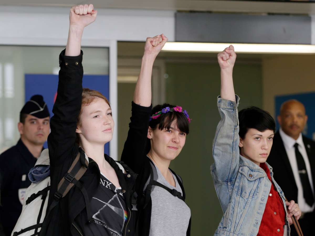 29 de maio - As jovens foram detidas após protestarem contra a prisão de Amina