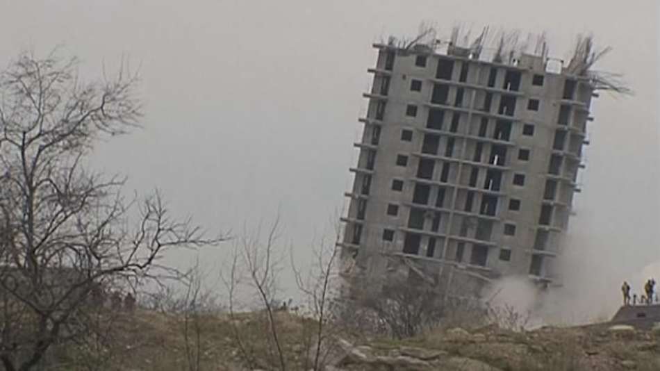 As Principais Notícias da Europa Implosão dá errado e prédio fica torto na Crimeia Exibir comentários Compartilhar Demolição de edifício de 16 andares vira piada na Crimeia, região administrada pela Rússia; só na segunda tentativa é que o prédio veio abaixo AP Publicidade