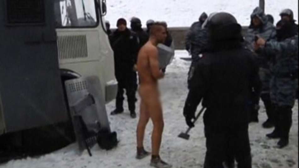 As Principais Notícias da Europa Manifestante é obrigado por policiais a ficar nu na neve na Ucrânia Exibir comentários Compartilhar Polícia da Ucrânia iniciou investigação após vídeo que mostrava a cena do manifestante nu sendo agredido vir à tona Reuters Publicidade