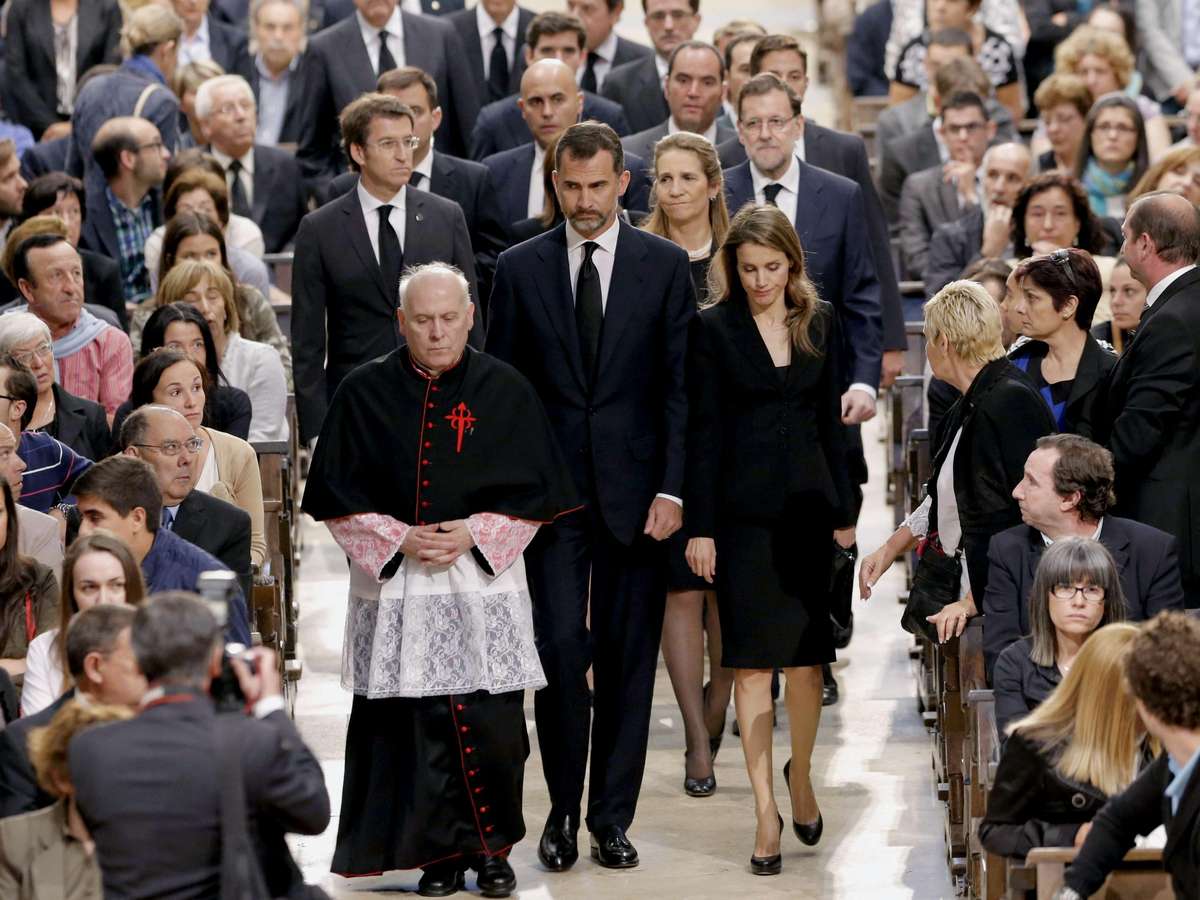O presidente do governo espanhol, Mariano Rajoy, e o chefe do executivo regional da Galícia, Alberto Núñez Feijóo, também estão presentes na cerimônia, assim como vários ministros e outras autoridades políticas e eclesiásticas, que junto com os familiares das vítimas e fiéis lotam a catedral.