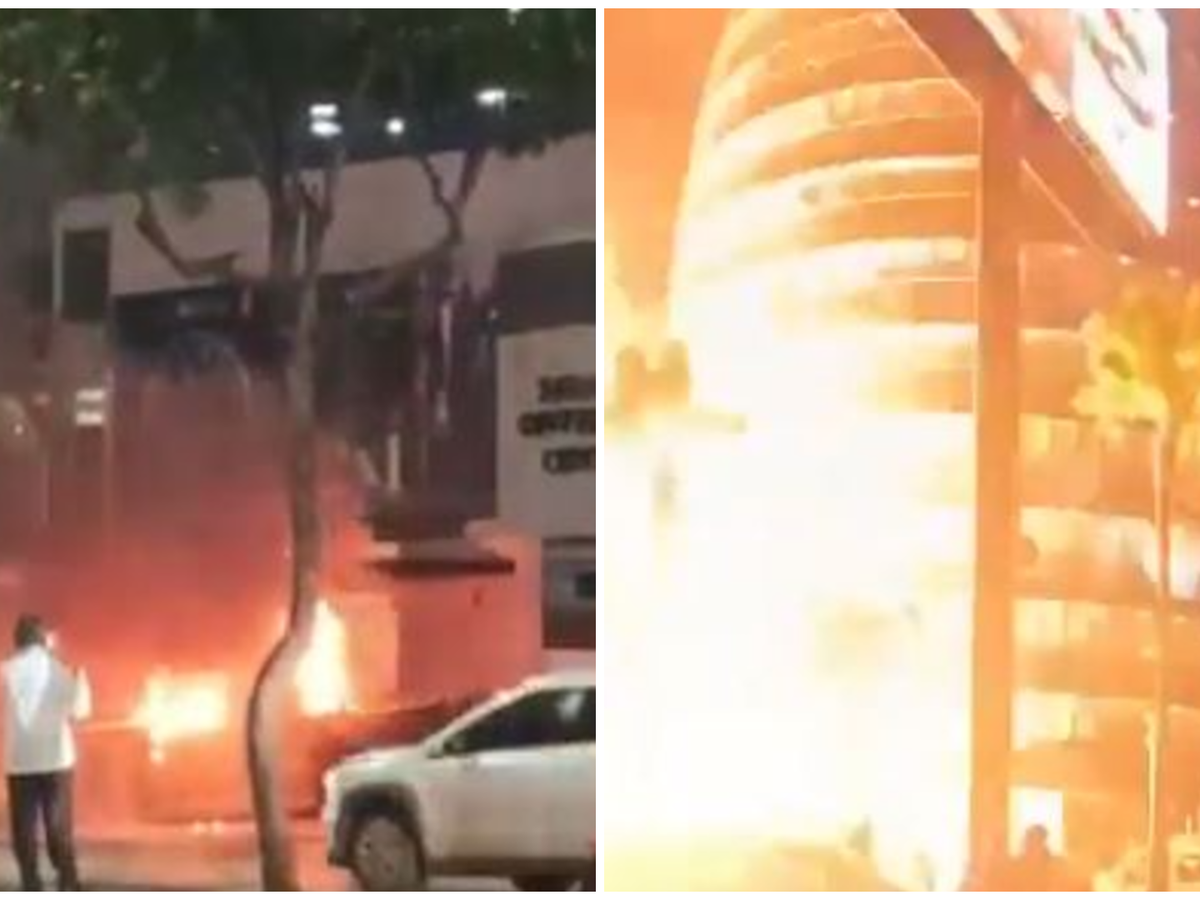 Um vídeo do serviço de segurança ECU911 mostra um veículo estacionado do qual sai fumaça e fogo. Minutos depois, acontece a explosão.