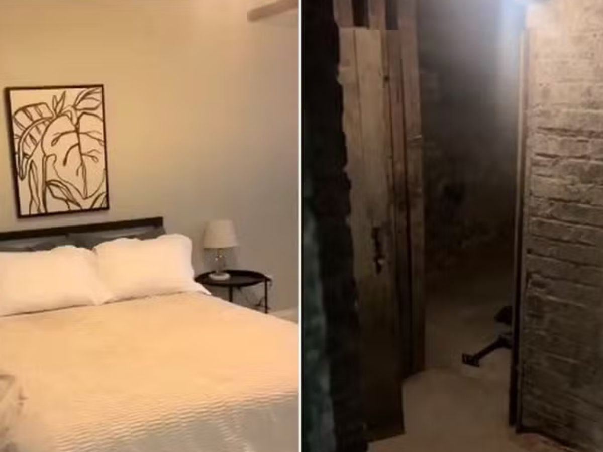 "Percebi que havia portas aleatórias dentro da casa que nunca foram mostradas na listagem no Airbnb. Enquanto nos preparávamos para dormir, eu e meu primo notamos uma luz acesa em um dos quartos que estava trancado. Decidimos tentar abrir. Peguei um garfo e consegui abrir a porta. Foi quando eu vi", relatou a americana.