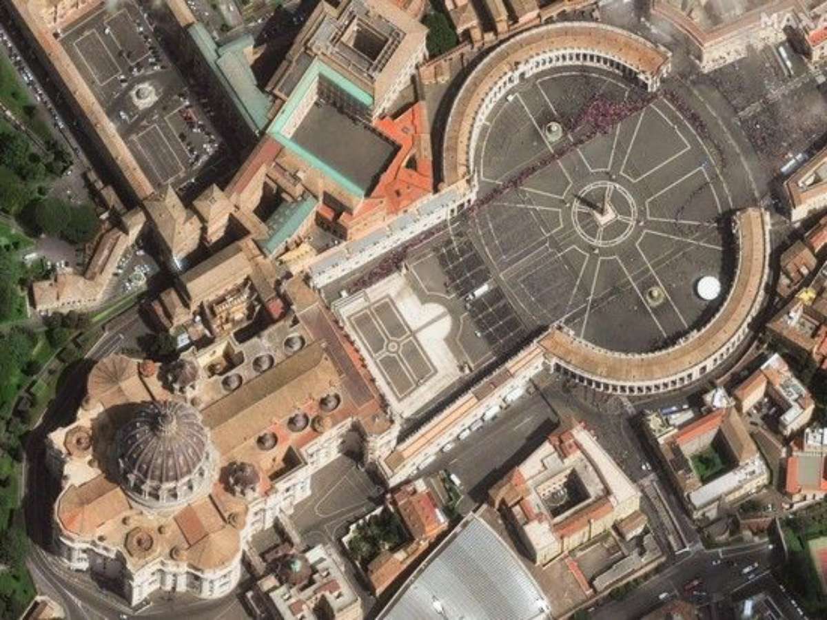 Nas imagens, divulgadas pela empresa Maxar, é possível ver uma fila que tem início na escadaria da Basílica de São Pedro e se estende até a outra ponta da praça, fazendo uma curva em direção à face sul das arcadas e, de lá, para as ruas da capital italiana.
