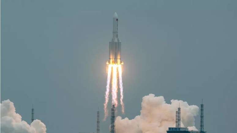 O foguete chinês "Long March 5B", que levou o primeiro módulo da estação espacial do país asiático, está sem nenhum controle e deve cair na Terra neste final de semana.