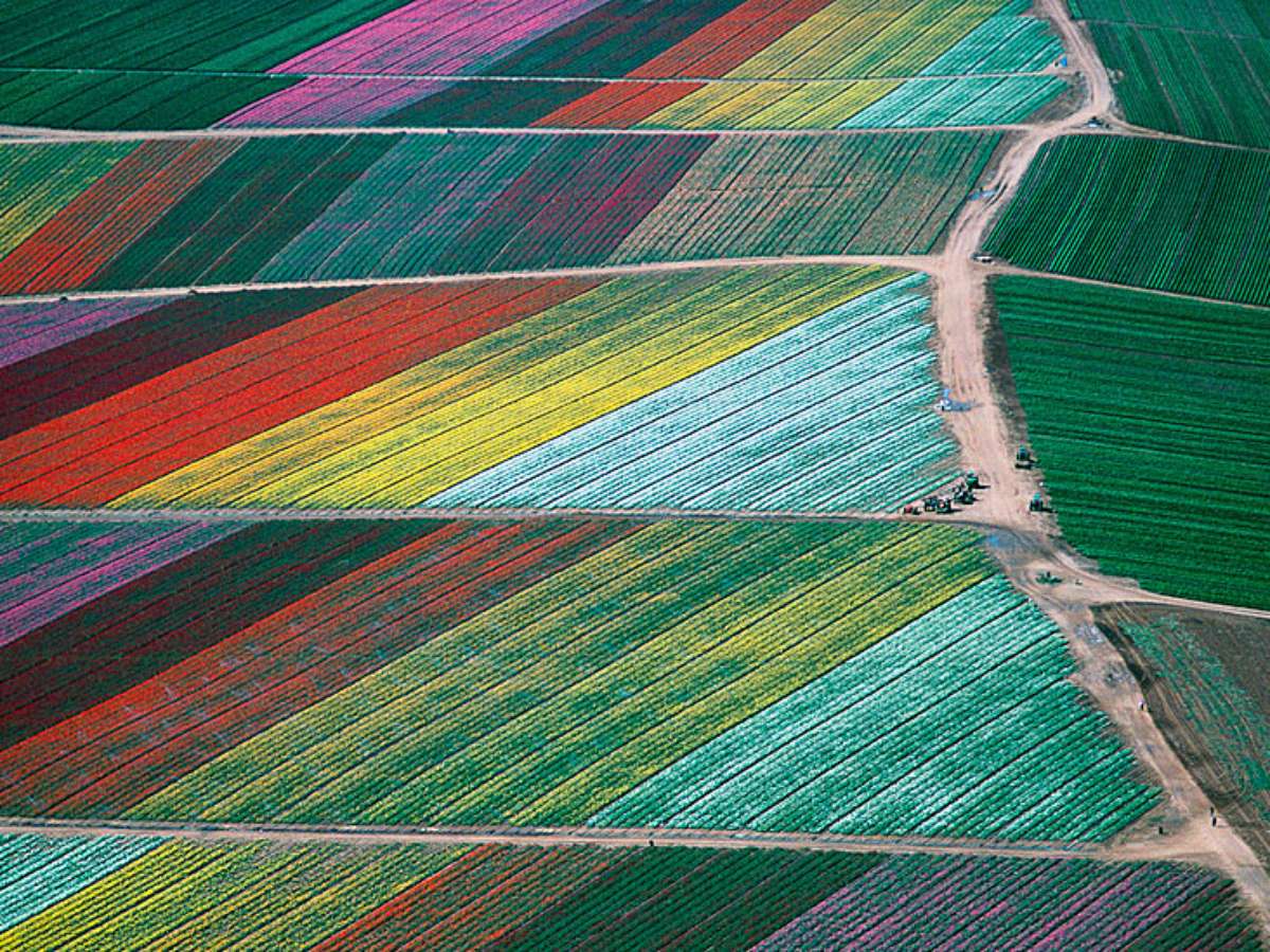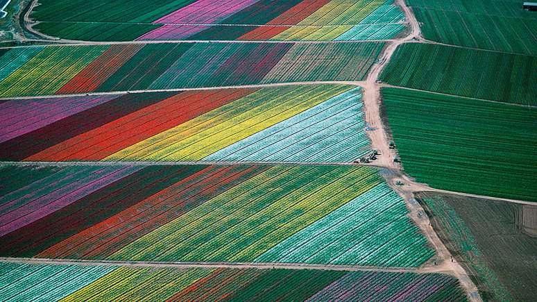 O fotógrafo americano Alex MacLean registra há 30 anos paisagens americanas e em outros países de uma perspectiva diferente: vistas do alto. Acima, campos floridos em Carlsbad, Califórnia/2004