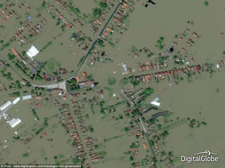 Inundações atingiram a Croácia este ano, como vemos na imagem de Gunja, em maio
