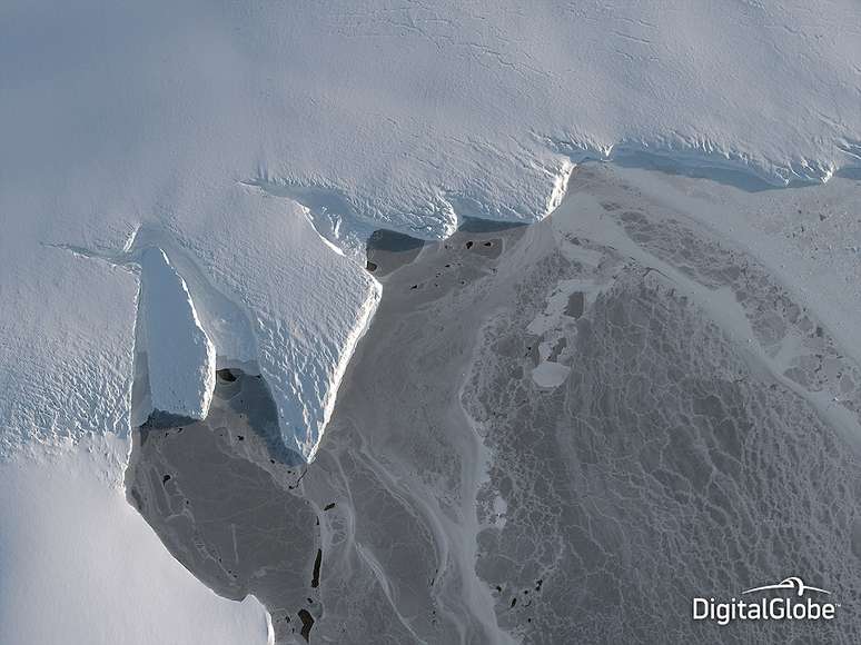 A foto tirada em março deste ano mostra as consequências de alterações climáticas em Nordenskjold Basin, Antártica
