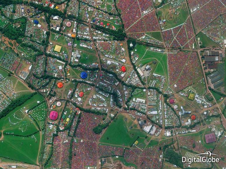Fotografias de satélite também podem ser usadas para melhorar as experiências humanas, como na foto acima, que pode dar aos participantes do Festival de Glastonbury uma vista aérea surpreendente