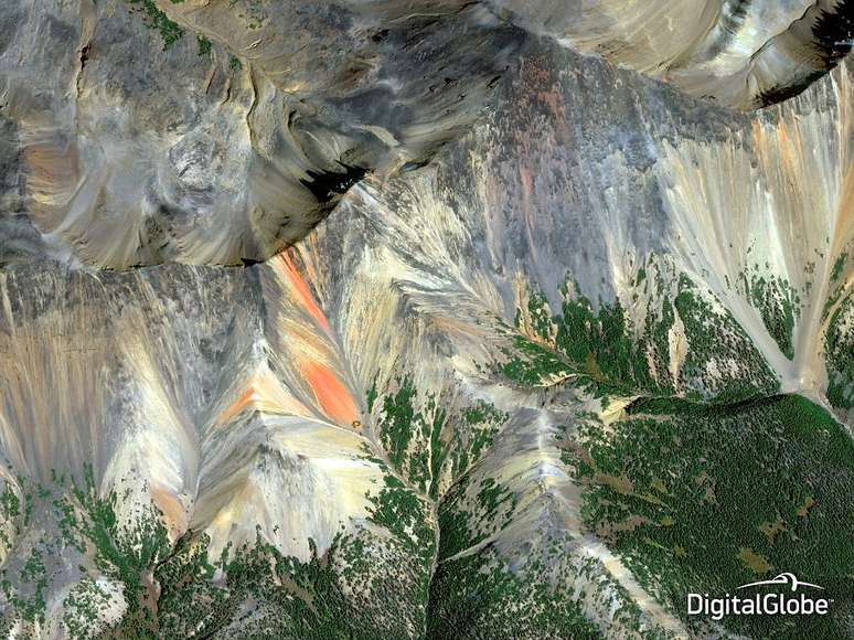 Geólogos podem economizar tempo e custos de exploração por meio da análise de imagens que dentificam minerais específicos. Acima, uma foto das montanhas de Rainbow Range, em British Columbia, Canadá