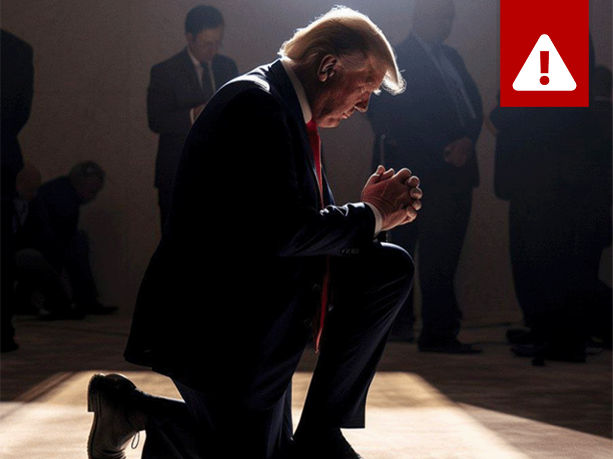 Na semana passada, o próprio Trump compartilhou uma imagem gerada por IA em sua própria plataforma de mídia social Truth Social. Na imagem, ele aparece ajoelhado rezando.