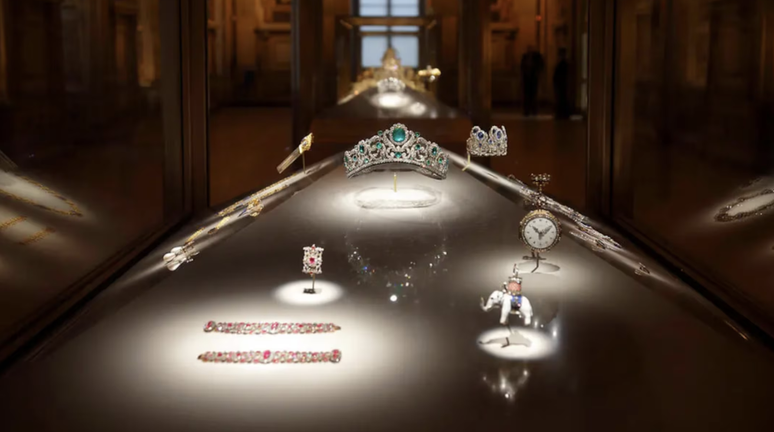 Entre as peças mais icônicas estão o diamante Regent, o Sancy e a coroa da imperatriz Eugênia