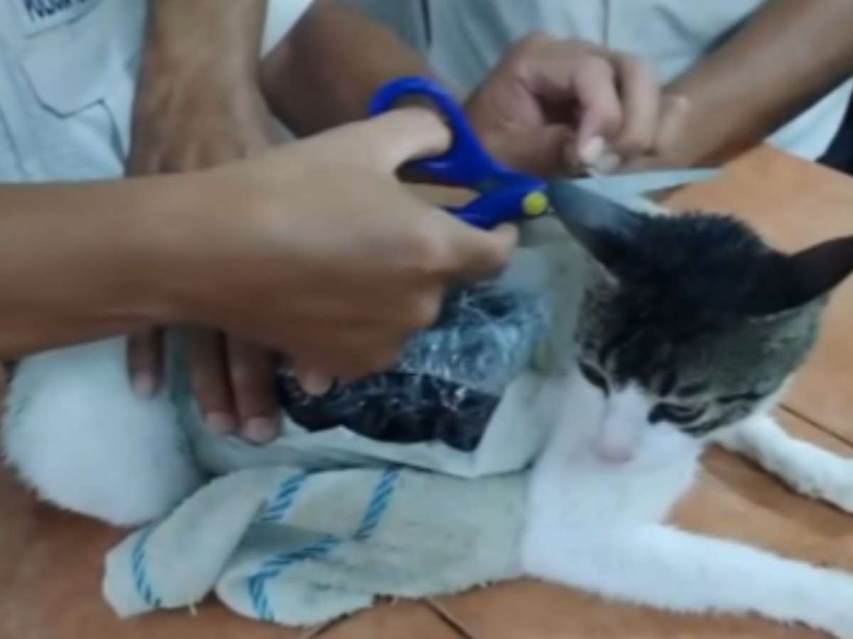 Uma cena um tanto inusitada foi testemunhada por policiais no presídio de Pococí, na Costa Rica. Um gatinho foi ‘capturado’ enquanto tentava entrar pela cerca do local com drogas presas ao seu corpo.
