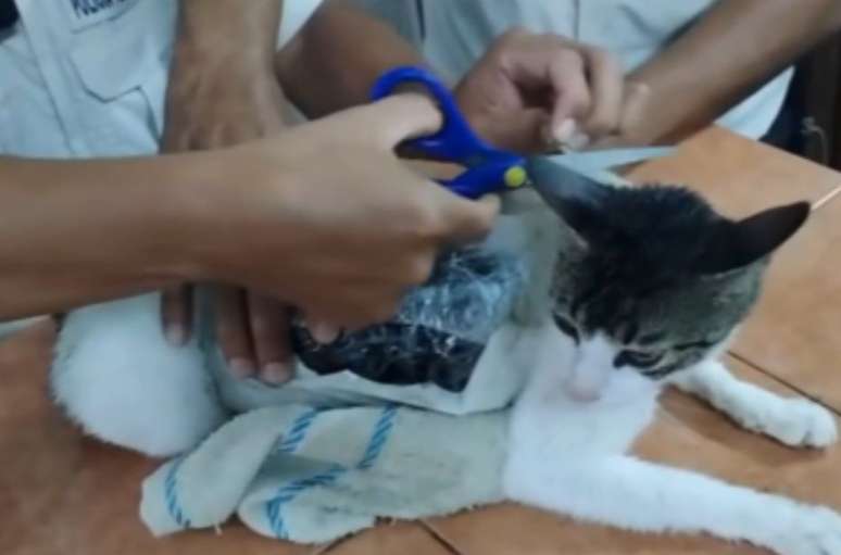 Ele acionou o alerta e uma equipe foi até o local para resgatá-lo. Em um vídeo publicado nas redes da pasta, é possível ver o animal sobre a cerca, parecendo assustado, enquanto um policial tenta pegá-lo.