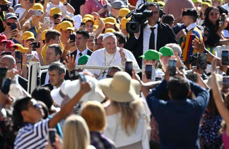 Um grupo de 34 crianças ucranianas participou nesta quarta-feira (8) da audiência geral do papa Francisco, na Praça São Pedro, no Vaticano. Elas estavam acompanhadas por 10 educadores.