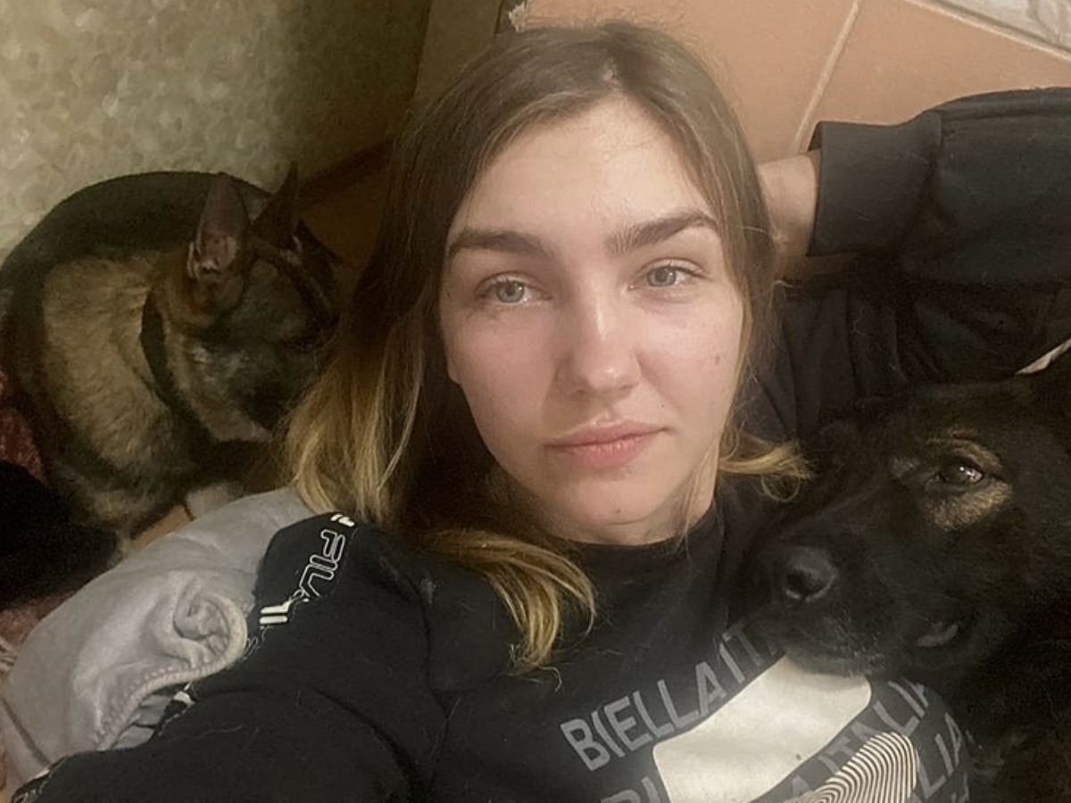 Oleksandra e seus quatro cães estão abrigados no banheiro de seu apartamento em Kharkiv desde o início do bombardeio.