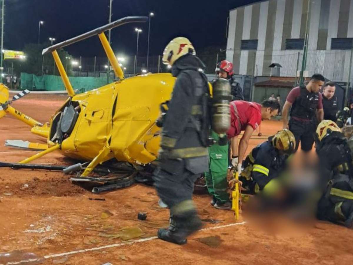 Um helicóptero caiu em uma quadra de tênis do Parque Manuel Belgrano, em Buenos Aires, capital da Argentina, na noite desta quinta-feira, 4. A aeronave ficou destruída e três pessoas — o piloto e dois passageiros, um homem e uma mulher — ficaram feridos.