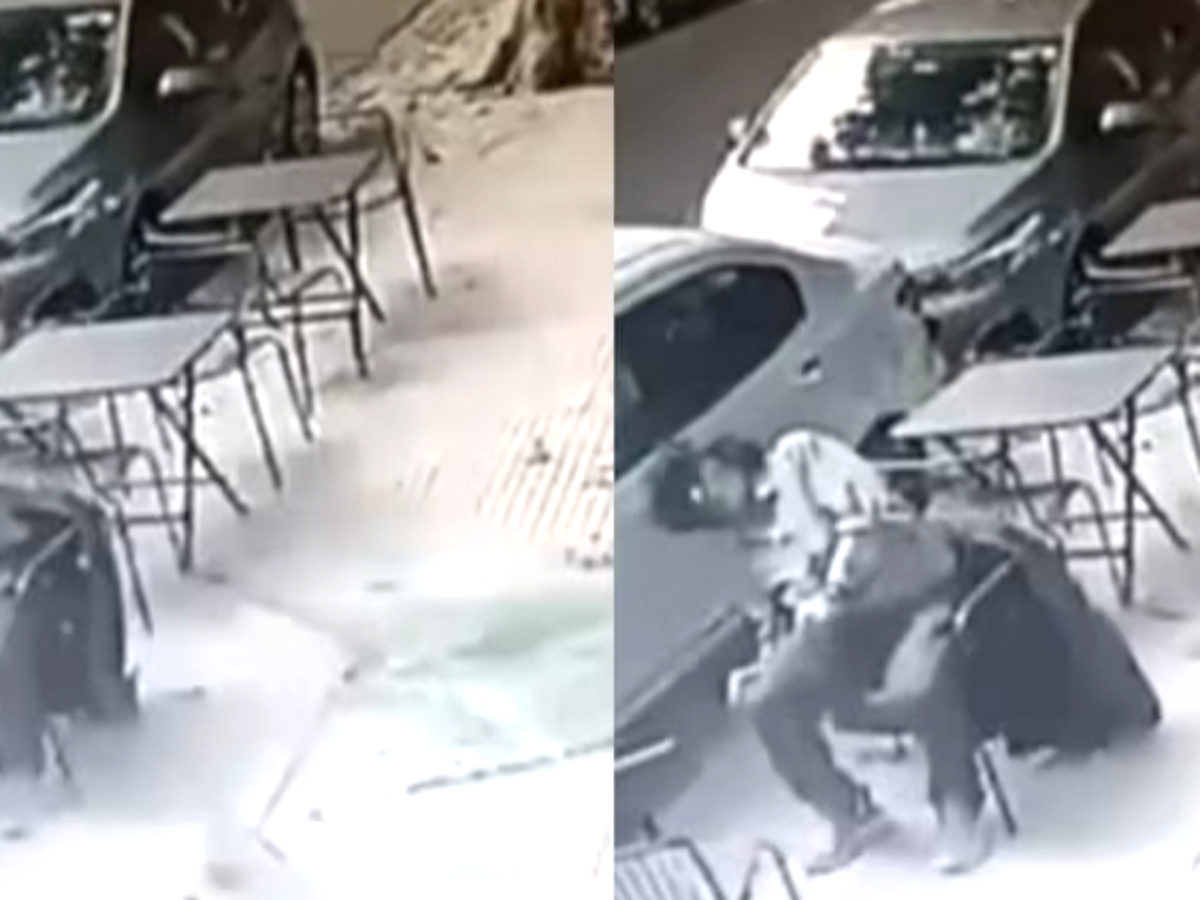 Homem é atingido por placa de vidro que ‘caiu do céu’ enquanto tomava café na rua e tem ferimentos graves