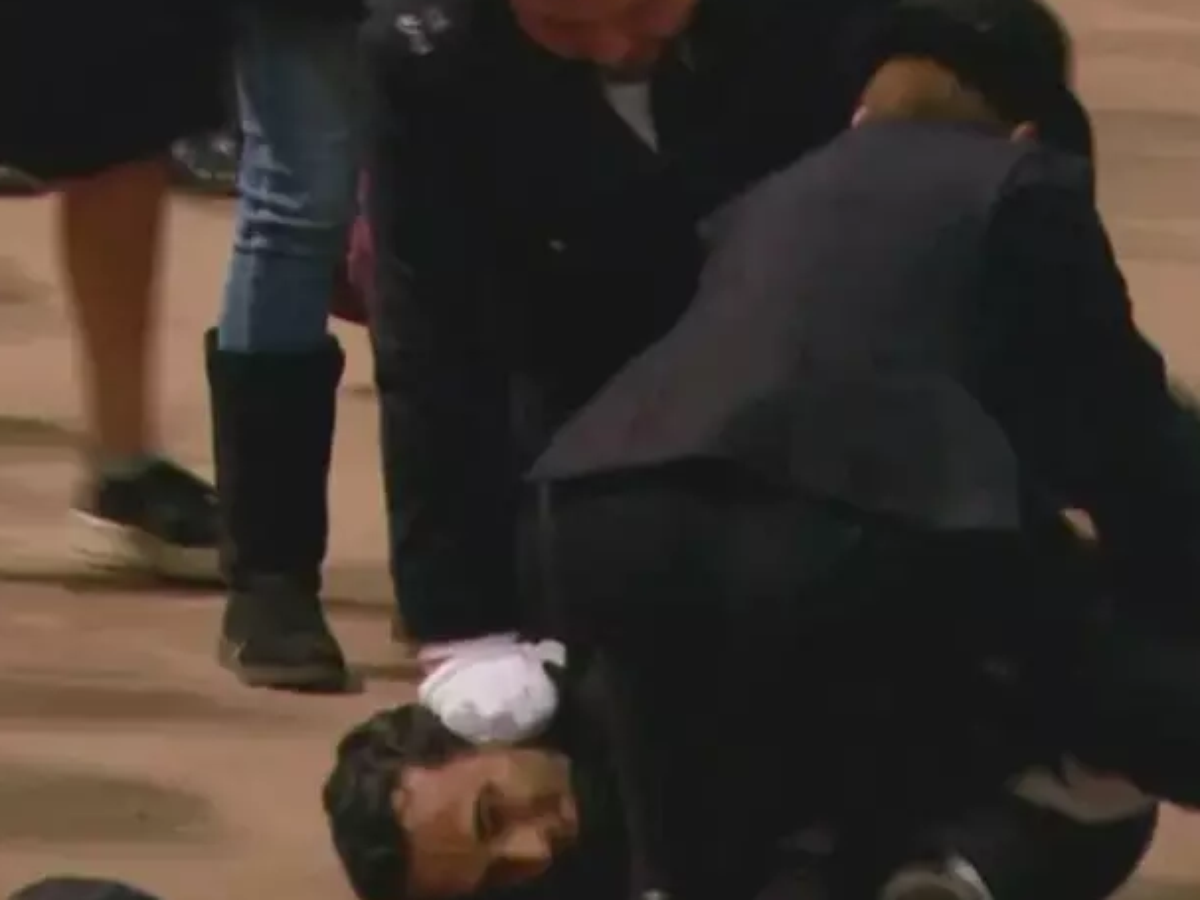 Uma fonte disse ao jornal The Guardian que o homem saiu da fila e conseguiu subir os degraus e tocar o caixão, antes de ser rapidamente detido. A polícia metropolitana teria se apressado para deter o homem pouco antes das 22 horas (horário local). A transmissão contínua do velório chegou a ser interrompida por 15 minutos.