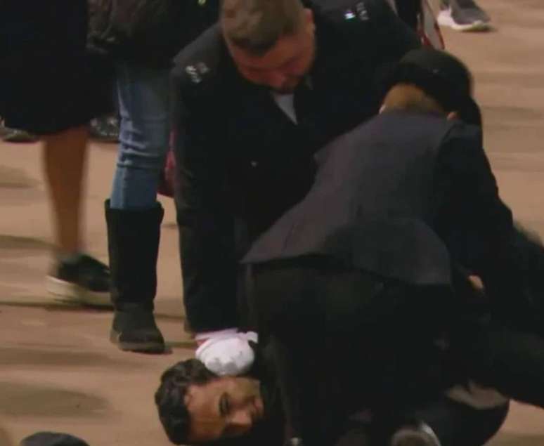 LONDRES - Um homem foi preso pela polícia de Londres na noite de sexta-feira, 16, após se aproximar e tocar o caixão da rainha Elizabeth II. O corpo da monarca chegou ao Palácio de Westminster na manhã de quarta-feira, 14, onde será velado até esta segunda-feira, 19, em uma cerimônia montada para que os súditos britânicos possam se despedir da monarca mais longeva da História do país.