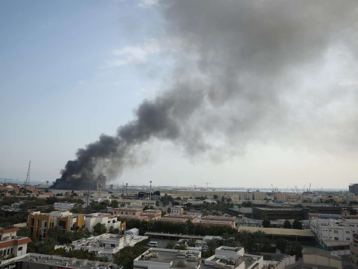 Nos Emirados Árabes Unidos, imagens do Porto de Jebel Ali, em Dubai — área que inclui uma zona recreativa cercada utilizada pela Marinha dos EUA — mostram uma coluna de fumaça saindo de uma grande estrutura no domingo. Embora não seja uma base formal americana, o local é um dos principais pontos de escala da frota dos EUA na região.