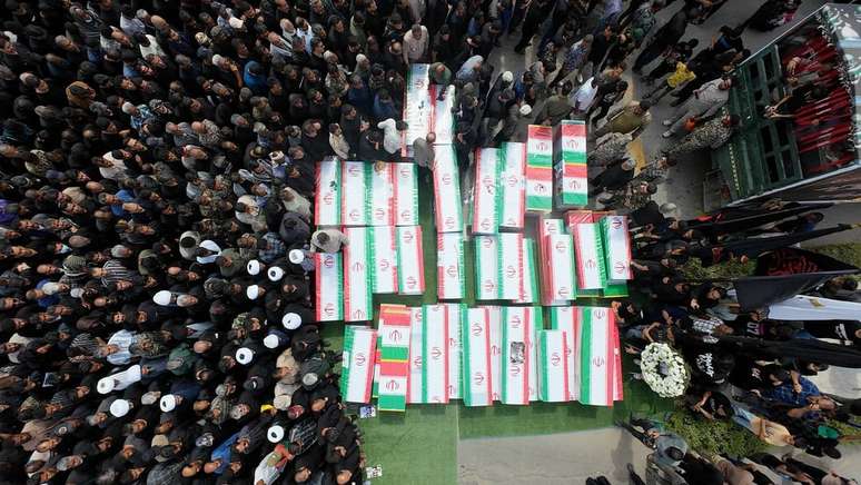 O Irã promoveu, nesta terça-feira, 3, uma cerimônia fúnebre coletiva para 165 alunas e funcionárias que morreram no sábado, 28, após um ataque descrito pelo governo como uma ação conjunta dos Estados Unidos e de Israel contra uma escola feminina na cidade de Minab, no sul do país.