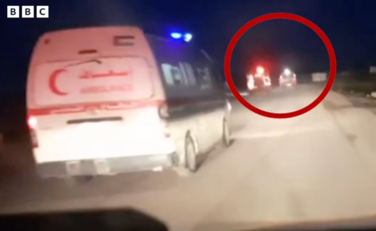 O vídeo mostra que os veículos estavam claramente identificados e os paramédicos usavam uniformes refletivos de alta visibilidade.