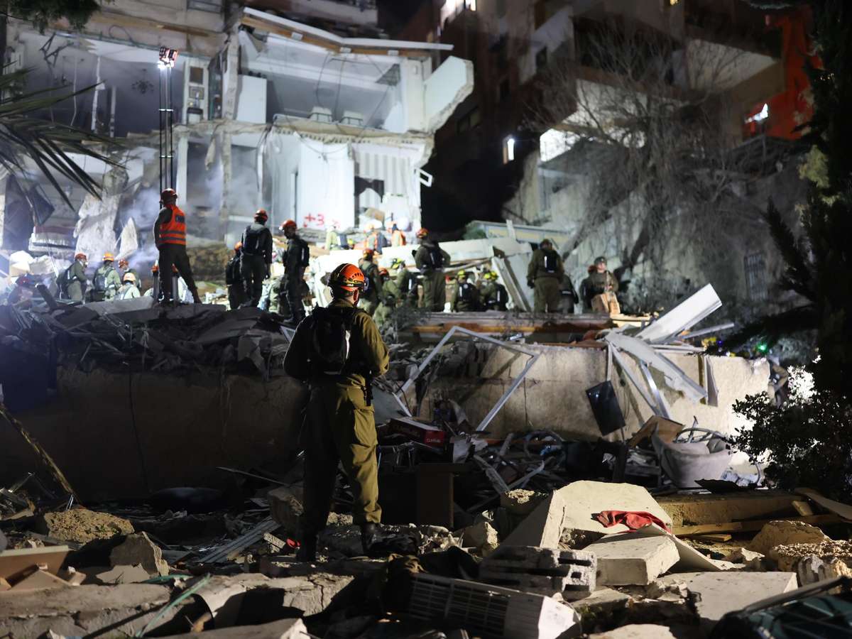 O trabalho das equipes de resgate é arriscado porque a ogiva do míssil, uma carga massiva de 450 quilos que não chegou a explodir no impacto, permanece entre os escombros, o que obrigou a evacuação total da área.