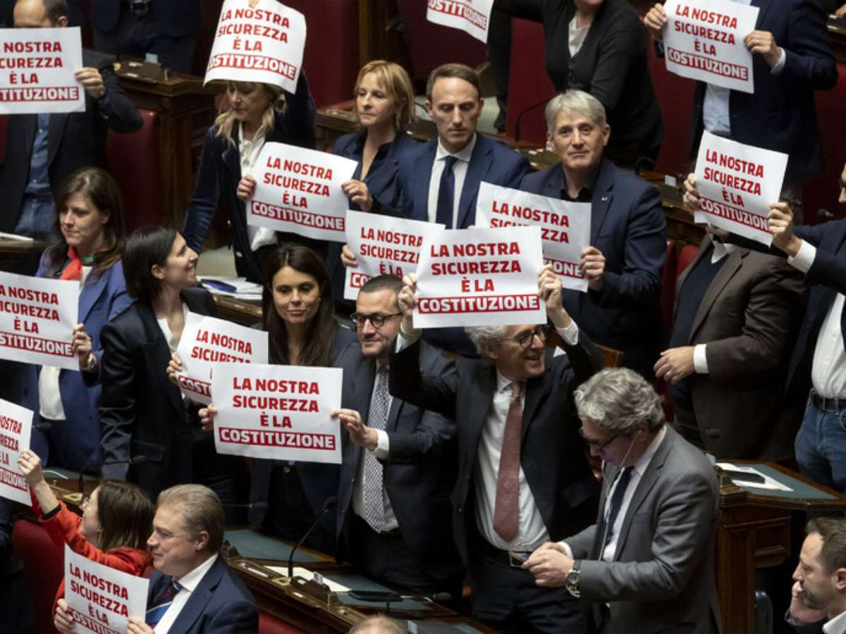 O decreto de segurança, que expiraria no sábado (25) caso não fosse aprovado, foi promulgado enquanto membros da oposição cantavam o hino da resistência da Segunda Guerra Mundial, "Bella Ciao", e exibiam cartazes com os dizeres "Nossa segurança é a Constituição", além de carregarem papoulas em memória do Dia da Libertação, a ser celebrado neste 25 de abril, data em que a Itália comemora sua libertação pelos Aliados na Segunda Guerra.