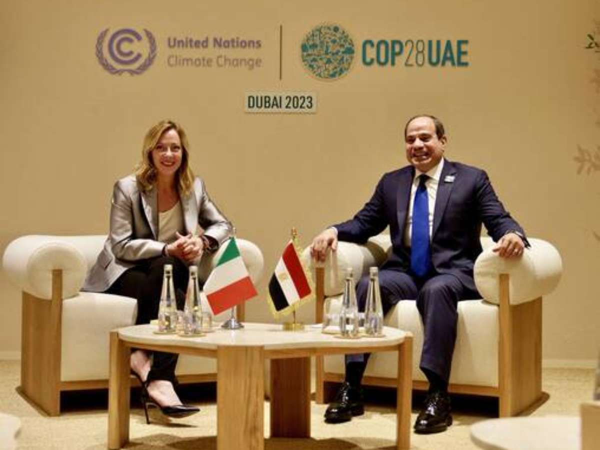 A primeira-ministra da Itália, Giorgia Meloni, se reuniu neste sábado (2) com o presidente do Egito, Abdel Fattah al-Sisi, em Dubai, nos Emirados Árabes Unidos, para reforçar os esforços para garantir uma "paz sustentável" em Gaza.