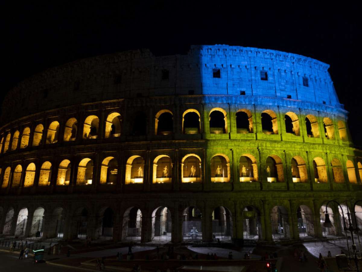 Em fevereiro de 2023, diversos monumentos da Itália, incluindo o Coliseu e o Palazzo Senatorio, também foram iluminados com as cores da bandeira da Ucrânia, em sinal de proximidade e solidariedade ao país no aniversário do início do conflito.