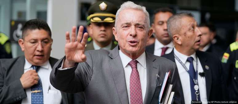 Uribe, que está com 73 anos, chefiou o governo da Colômbia de 2002 a 2010. Enquanto apoiadores o veem como uma figura central na luta contra grupos guerrilheiros de esquerda, críticos o acusam de violações de direitos humanos e de manter laços com paramilitares que atuaram na repressão violenta a esses grupos.