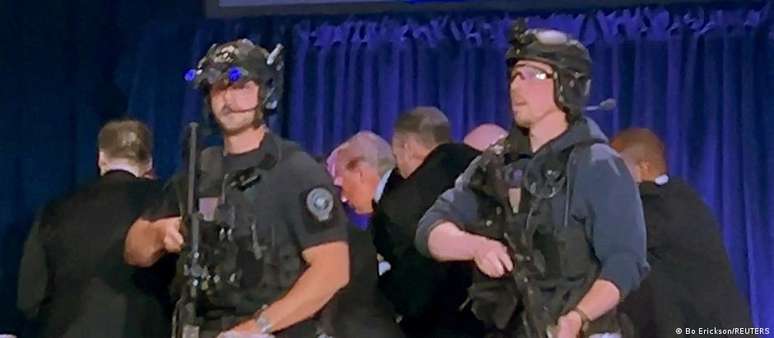 Nos Estados Unidos, a ex-presidente da Câmara Nancy Pelosi, adversária política de Trump, destacou a atuação dos agentes de segurança. Ela também mencionou o impacto do episódio ao lembrar experiências pessoais com violência política e manifestou solidariedade ao agente ferido e aos presentes.