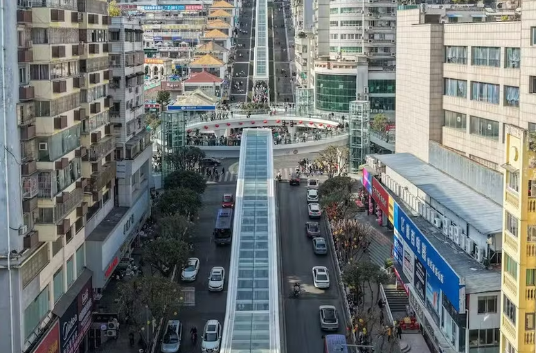 Maior escada rolante do mundo reduz trajeto de 1h para 20 minutos na China