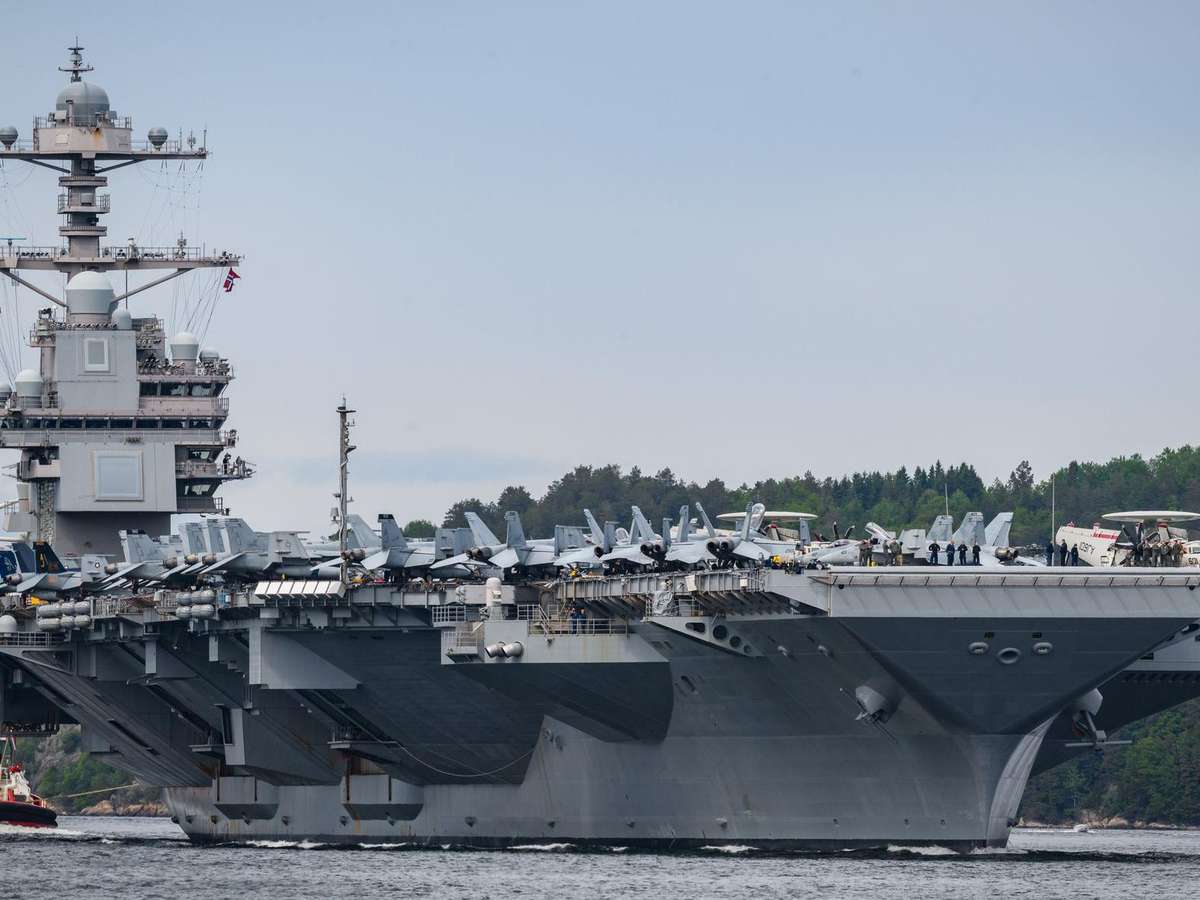 O USS Gerald R. Ford se junta a outros navios de guerra, um submarino nuclear e aeronaves caças F-35 que estão operando na região nas últimas semanas.