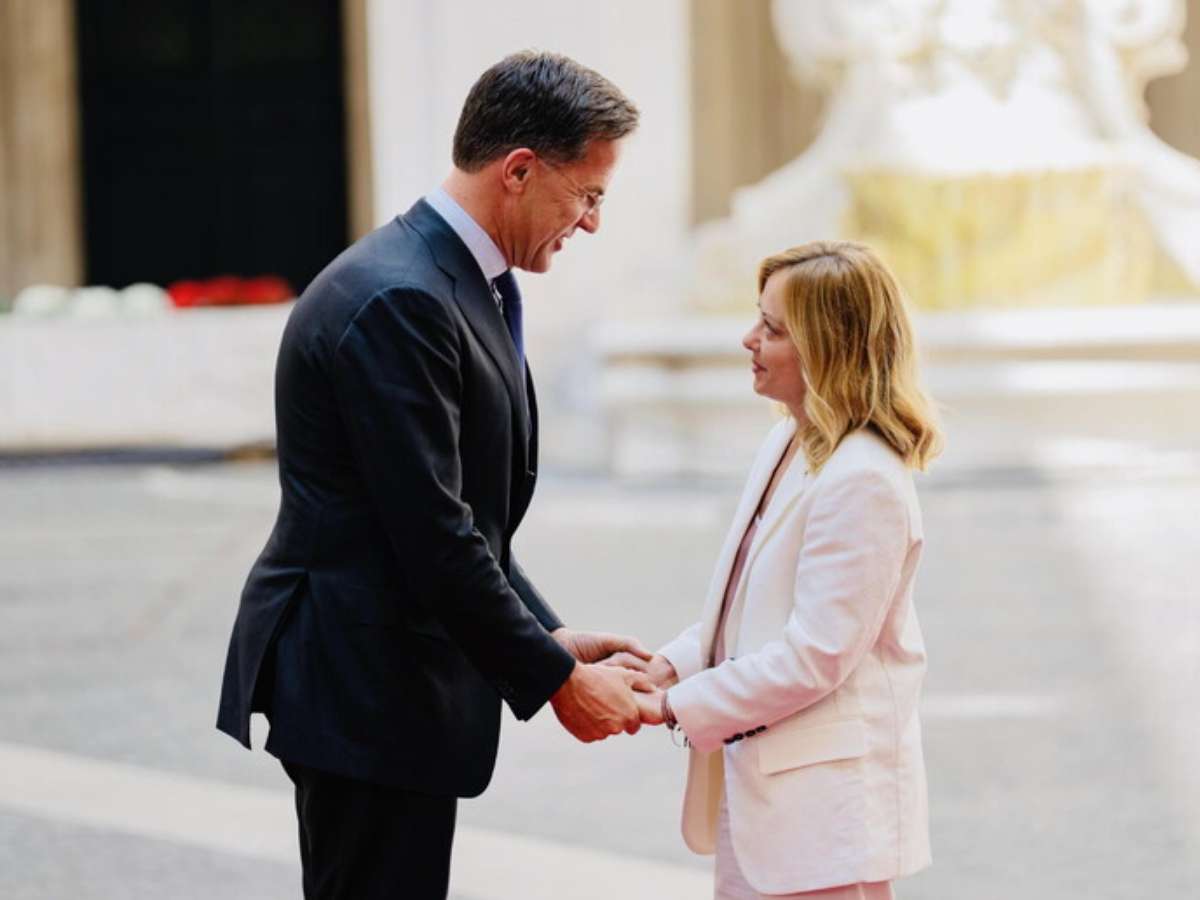 A primeira-ministra da Itália, Giorgia Meloni, recebeu nesta quinta-feira (12) o secretário-geral da Organização do Tratado do Atlântico Norte (Otan), Mark Rutte, no Palácio Chiggi, em Roma. O encontro bilateral discutiu temas que giraram em torno da segurança coletiva de seus membros, além do reforço do apoio à Ucrânia, em guerra com a Rússia.